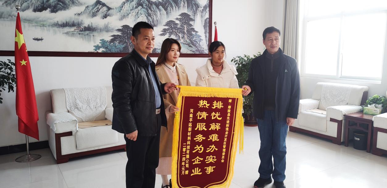 平遠(yuǎn)向鄢陵縣先進(jìn)制造業(yè)開發(fā)區(qū)管理委員會(huì)贈(zèng)錦旗