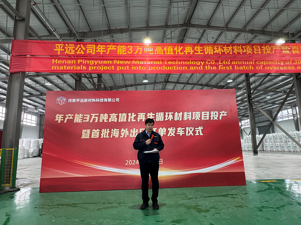 今天,我們迎著2024年的第一場瑞雪,在此舉辦“平遠公司年產(chǎn)3萬噸高值化再生循環(huán)材料項目投產(chǎn)暨首批海外訂單發(fā)車儀式”。